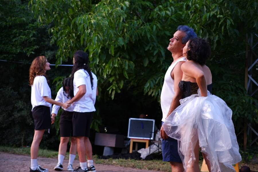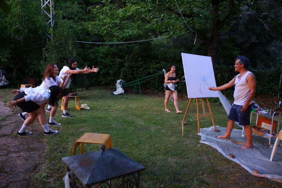 El work in progress se desarrolló durante 3 meses de ensayos creativos con un equipo de actores, actrices, vestuarista, atrecista y bailarina, bajo la dirección de Jorge Gregorio.