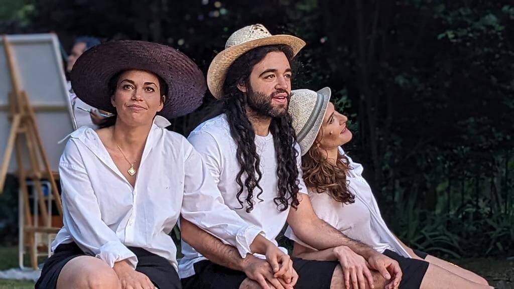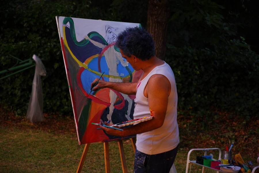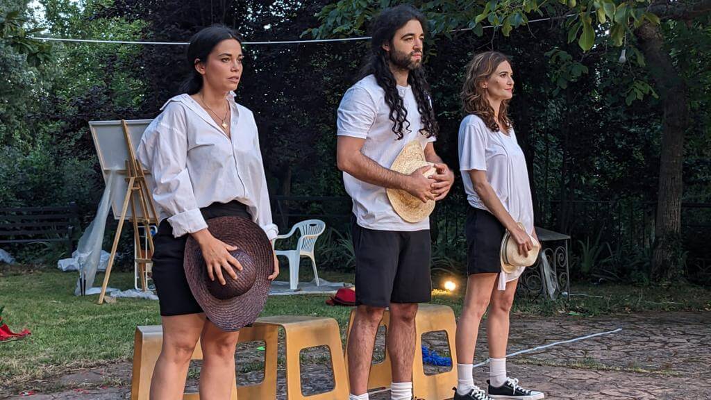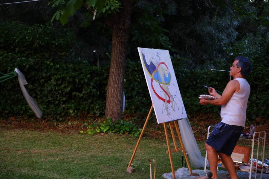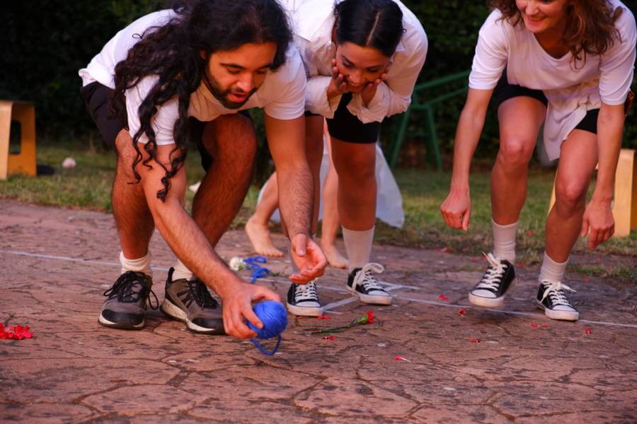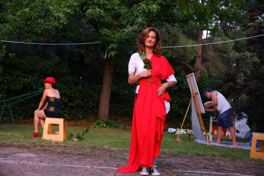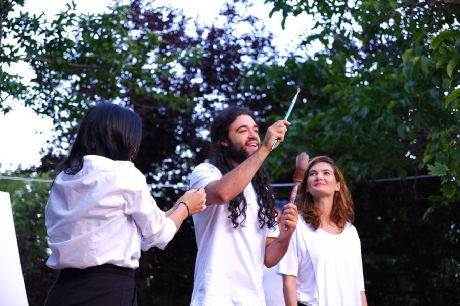 Estos personajes/criaturas van haciendo un recorrido por el mundo de los colores, con las imágenes y mensajes que trae la obra de Alberti. La propuesta tiene cierto aire performático ya que hay un personaje que a lo largo del espectáculo va creando una obra pictórica fruto de la inspiración de una musa que va viviendo todo lo que los chavales van proponiendo a lo largo del viaje por los colores.
