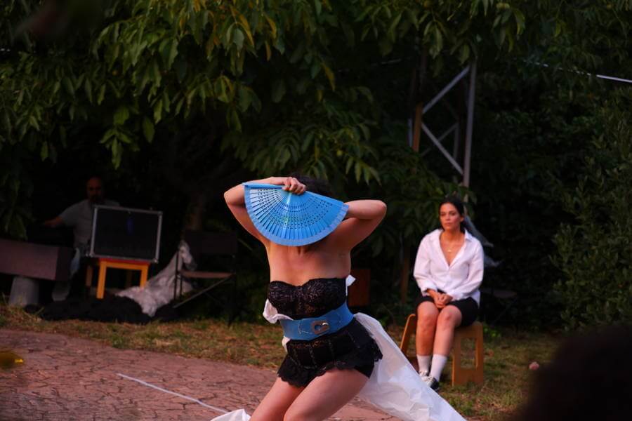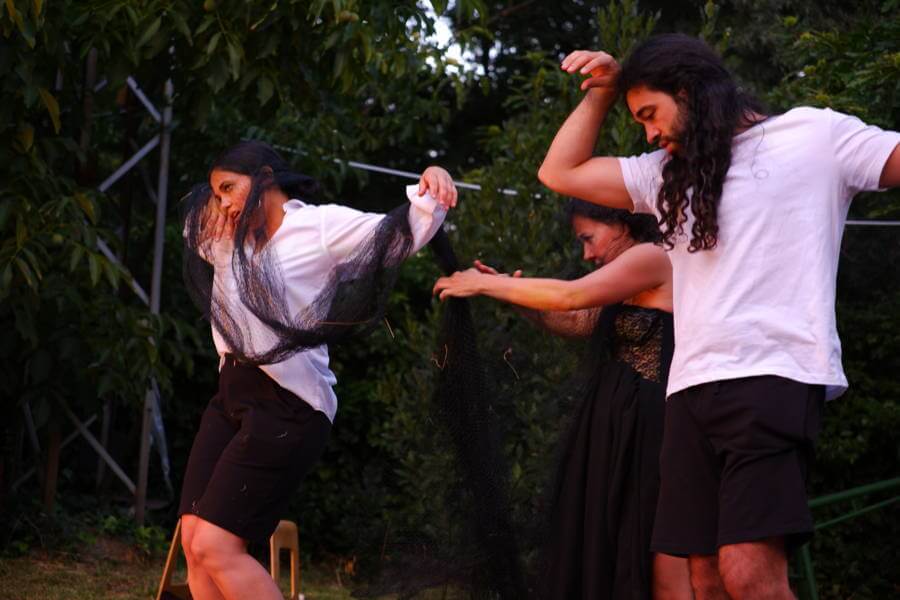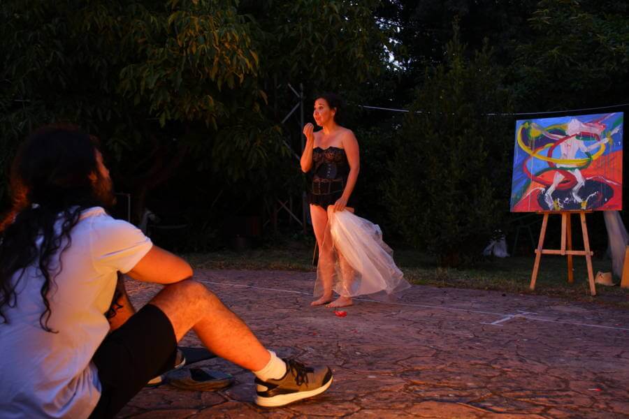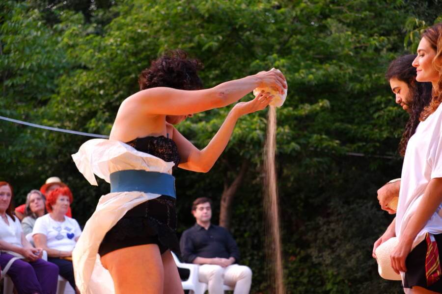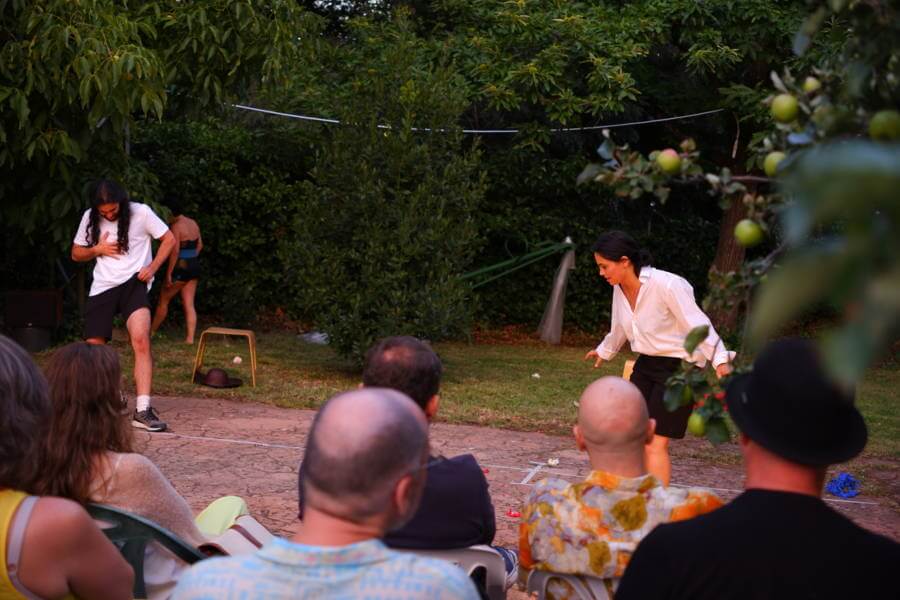 La duración de la propuesta estuvo entorno a una hora y la culminación fue una muestra con público en una finca privada (gentileza de Annie Chevreux y Paco Peñarrubia), en Piedralaves, en verano de 2023, con más de 80 personas de público entre amigas y vecinos del pueblo.